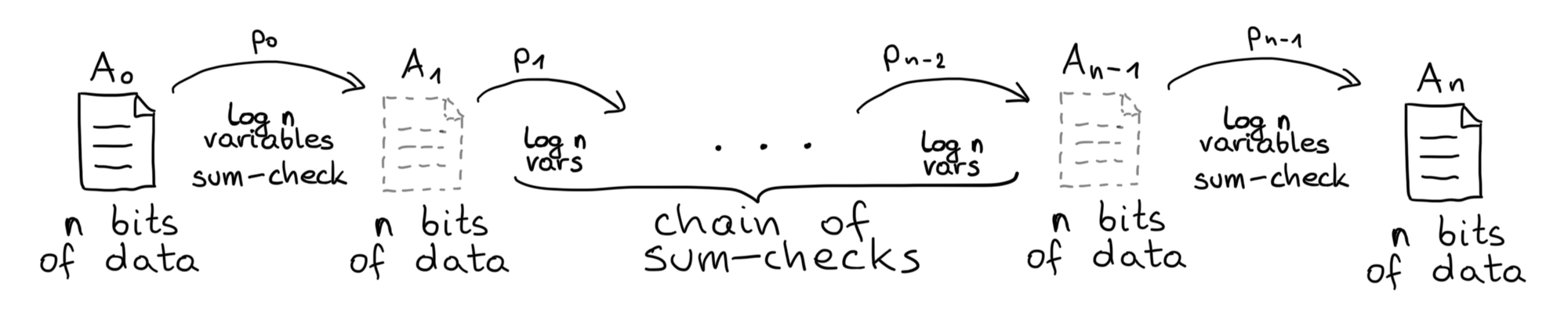 The verifier only needs to process all n bits of data on the output and input layers. All intermediate stages operate only on log n variables.
